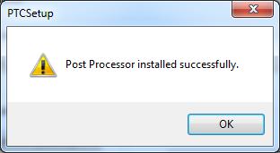 The utility analyses the previously-selected database and creates a Post pull-down list of all the post-processors it contains. Selecting a post will enable the “Install/Update” button, which you can then click to install the post-processor. If a “config.pro” configuration file is present in the specified start-up folder, the utility will add the following lines to the configuration file: